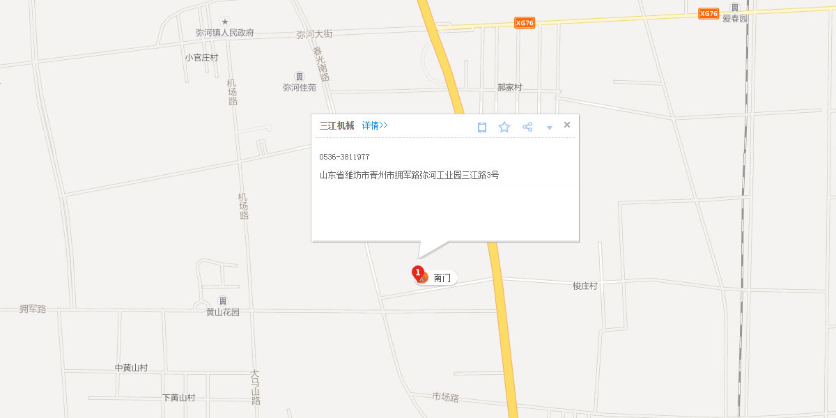 青州市三江機械有限公司坐落于中國北部的花木之鄉——山東省青州市,風景優美,交通便利,人杰地靈。